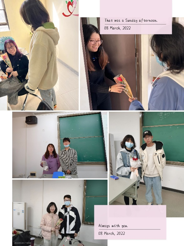 同时各个团支部在这一天也为任课的女老师们献上了一份祝福。祝老师们们在今后的生活中事业顺利,身体健康,万事顺意。
