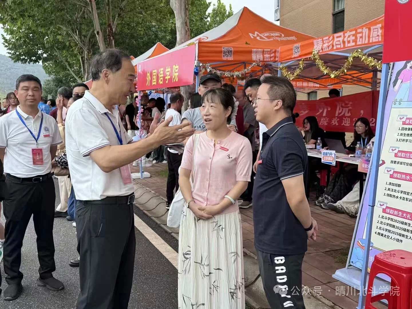 武汉晴川学院的校长兼董事长汪彬教授也亲自到场,检查新生报到情况。他跟一些新生和家长聊了聊,听他们说说对大学生活的期待和顾虑,鼓励新生们要快点适应新环境,融入大学生活。对于家长们关于孩子未来发展的疑问,汪彬校长也耐心解答,让家长们放心把孩子们交给北斗学院。他的到来,让整个迎新现场气氛更加热烈,也让新生和家长们感受到了学校领导对他们的关心和重视。