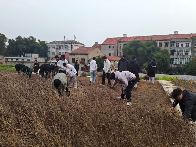 活动现场,团总支学生会成员率先垂范、踊跃在前。各部门齐心协力,分工有序,配合默契。面对丛生杂草,同学们不惧琐碎、不辞辛劳,俯身弯腰,徒手清拔,不留死角,将枯枝杂物一一归置。劳动中,大家始终洋溢着团结互助、无私奉献的热情,在挥洒汗水中妆点校园。经过共同努力,原本杂草遍地的场地变得井然有序,校园风貌为之一新。