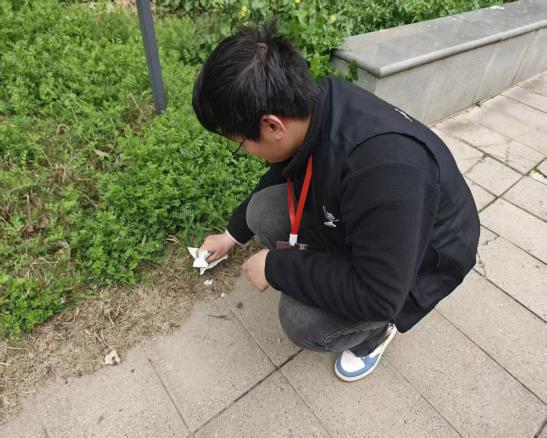 随后,成员们都准时出现在宿舍楼周边,身着代表商学院学生会的马甲,认真地清扫着每一个角落,不放过任何一处垃圾。他们有的弯腰捡拾落叶和纸屑,有的用扫帚清扫路面灰尘,有的将垃圾分类装袋运走,干劲十足。面对脏活累活,同学们毫无怨言,互相配合、分工协作,用实际行动践行着“不怕苦、不怕累”的精神。