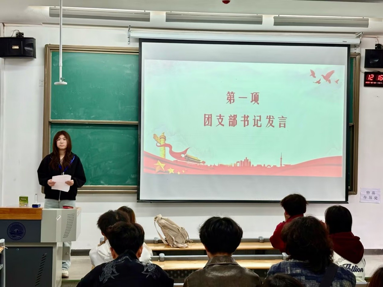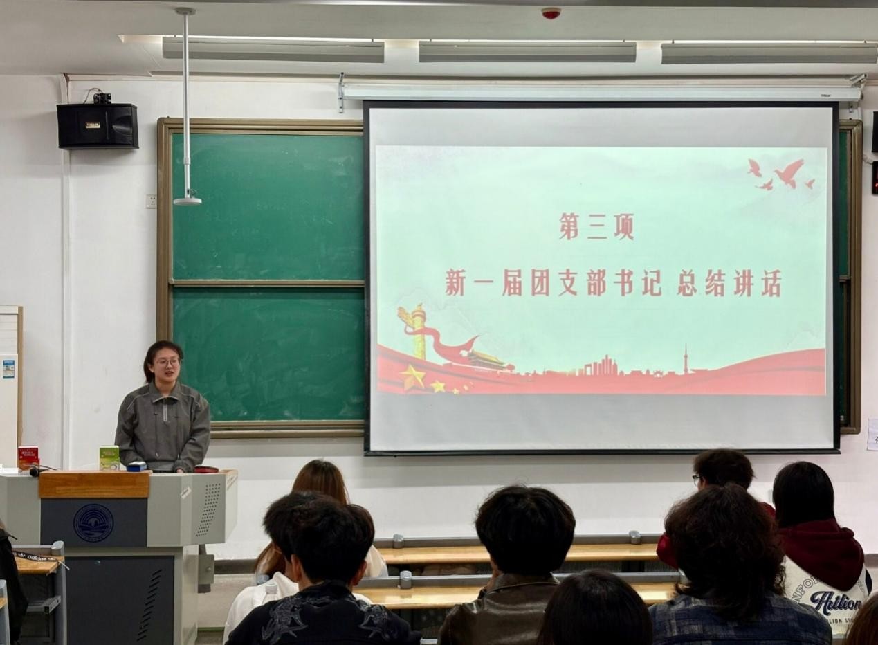 大会第二项,由新一届团支部书记任淑琪发言。作为新一届支部负责人,她明确未来工作将持续向内学习,提升专业深度;以思想为引领,推动与学生骨干相互融合。共同推动团支部迈向新高度。
