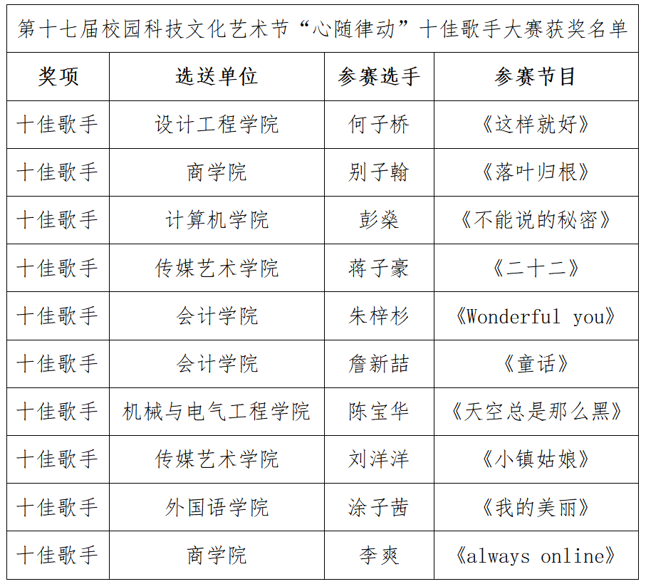 (“心随律动”十佳歌手大赛、“舞动青春”舞蹈大赛优秀奖)