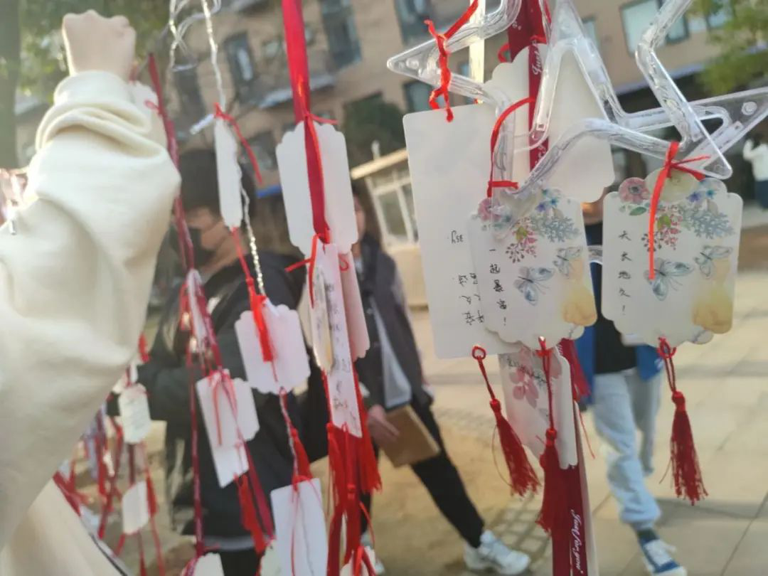 在此次活动中,同学们给喜欢的手工艺品投票,并且可以通过套圈游戏来争取获得手工艺品的机会,获得机会即可与手工作者单独交流,作者同意赠与后,这位同学便可以获得自己的心仪之物,收获难得的友谊与温暖,最后两人合照留念,这会成为两个女生之间美好的学生时代回忆。同学们还可以参与“心愿卡”填写,选择一张喜欢的心愿卡并写下自己的心愿,将美好的心愿系上“心愿树”的红丝带,祈祷通过努力一切可以如愿。