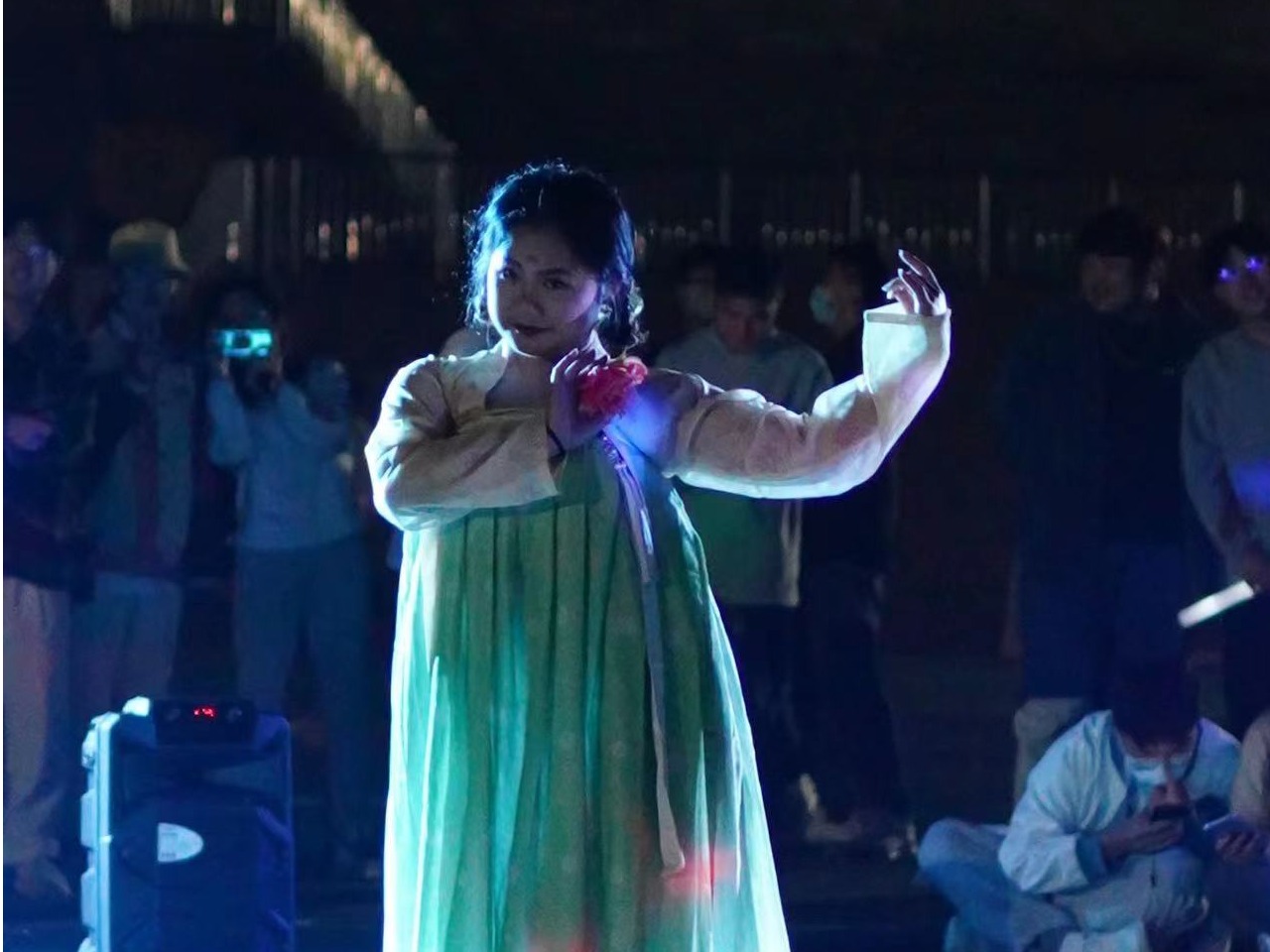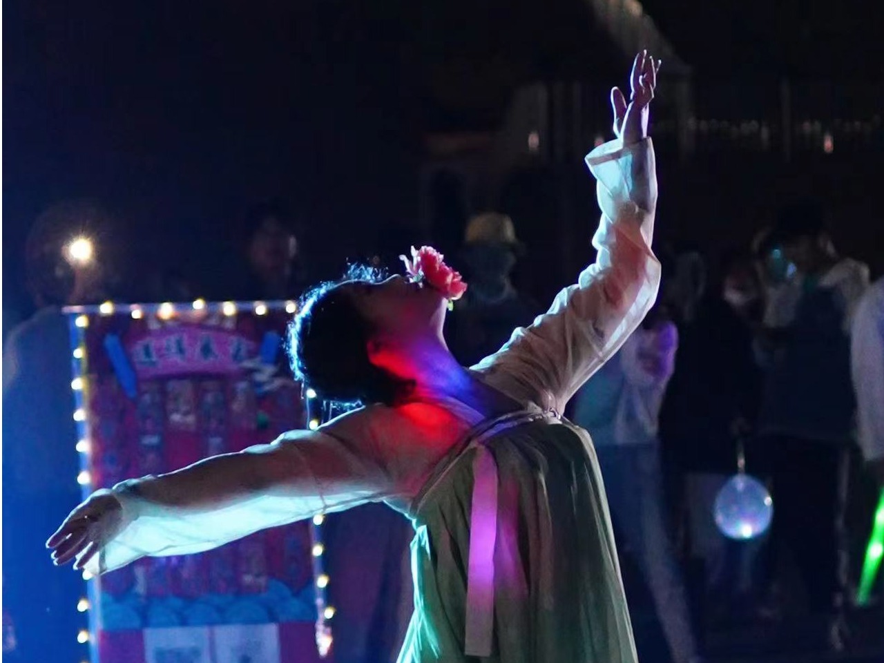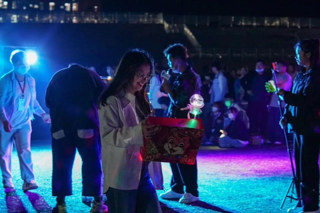 天色将晚,伴随着动感的音乐与尖叫声,和第一轮直播间幸运观众出现后,现场氛围感拉满。本次活动也由传院舞蹈队的开场舞拉开了序幕。