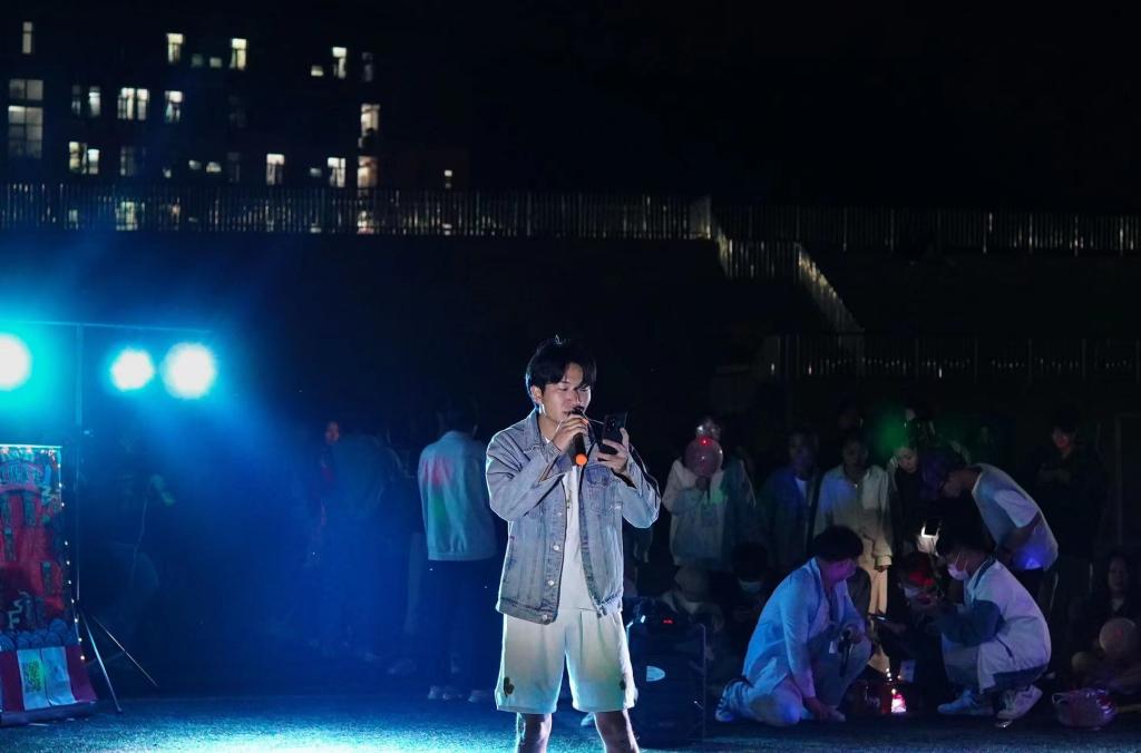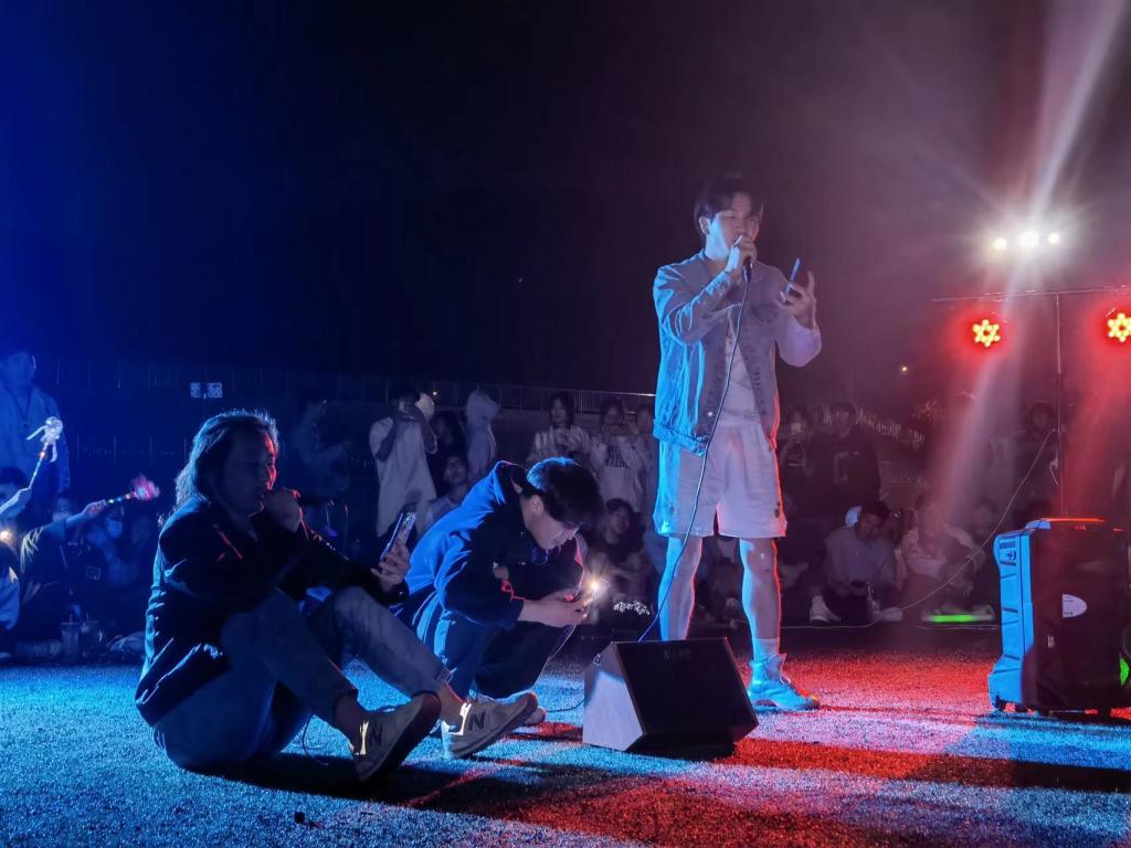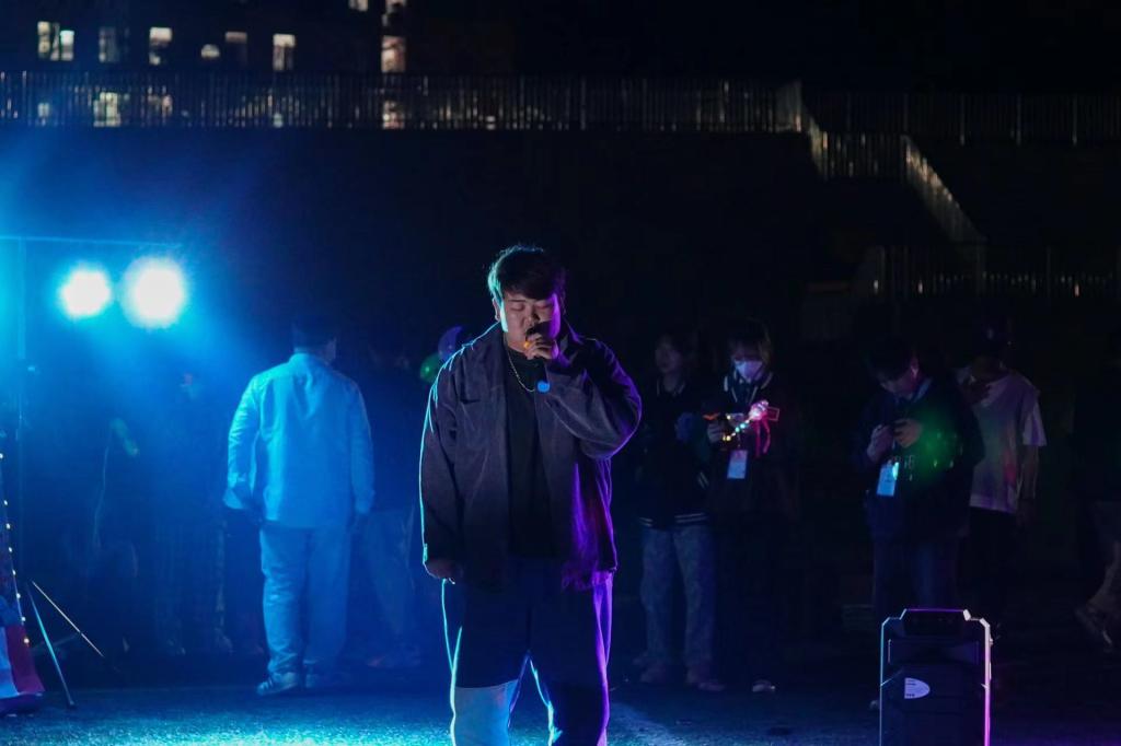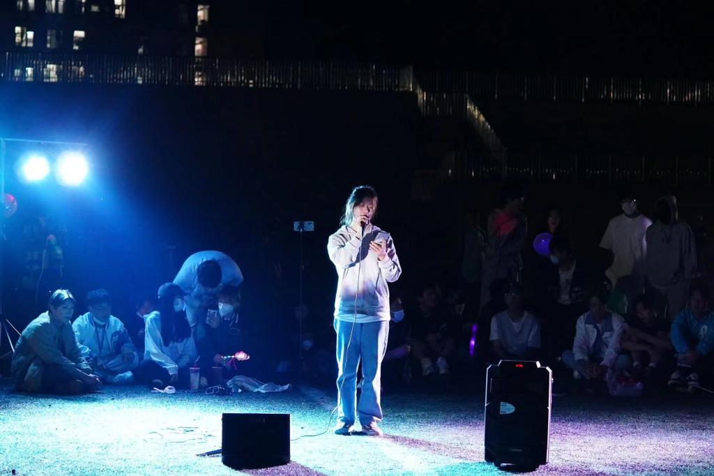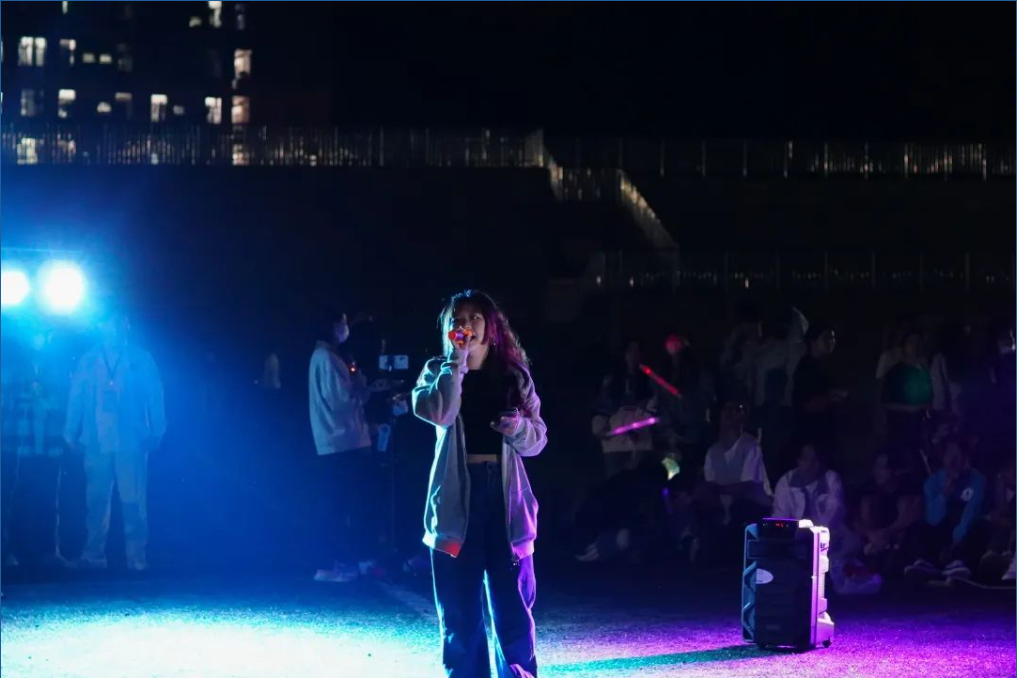 精彩节目继续上演,朱会娴演唱的《永不失联的爱》讲述了对爱情的热忱。随着闪光灯的摆动,庞维辉带来的歌曲的《十年》引起了观众们的共鸣。节目接近尾声,现场即兴报名演唱的同学数不胜数。《那些你很冒险的梦》《白羊》《当年情》《大家一起喜洋洋》……互动十足、激情澎湃。
