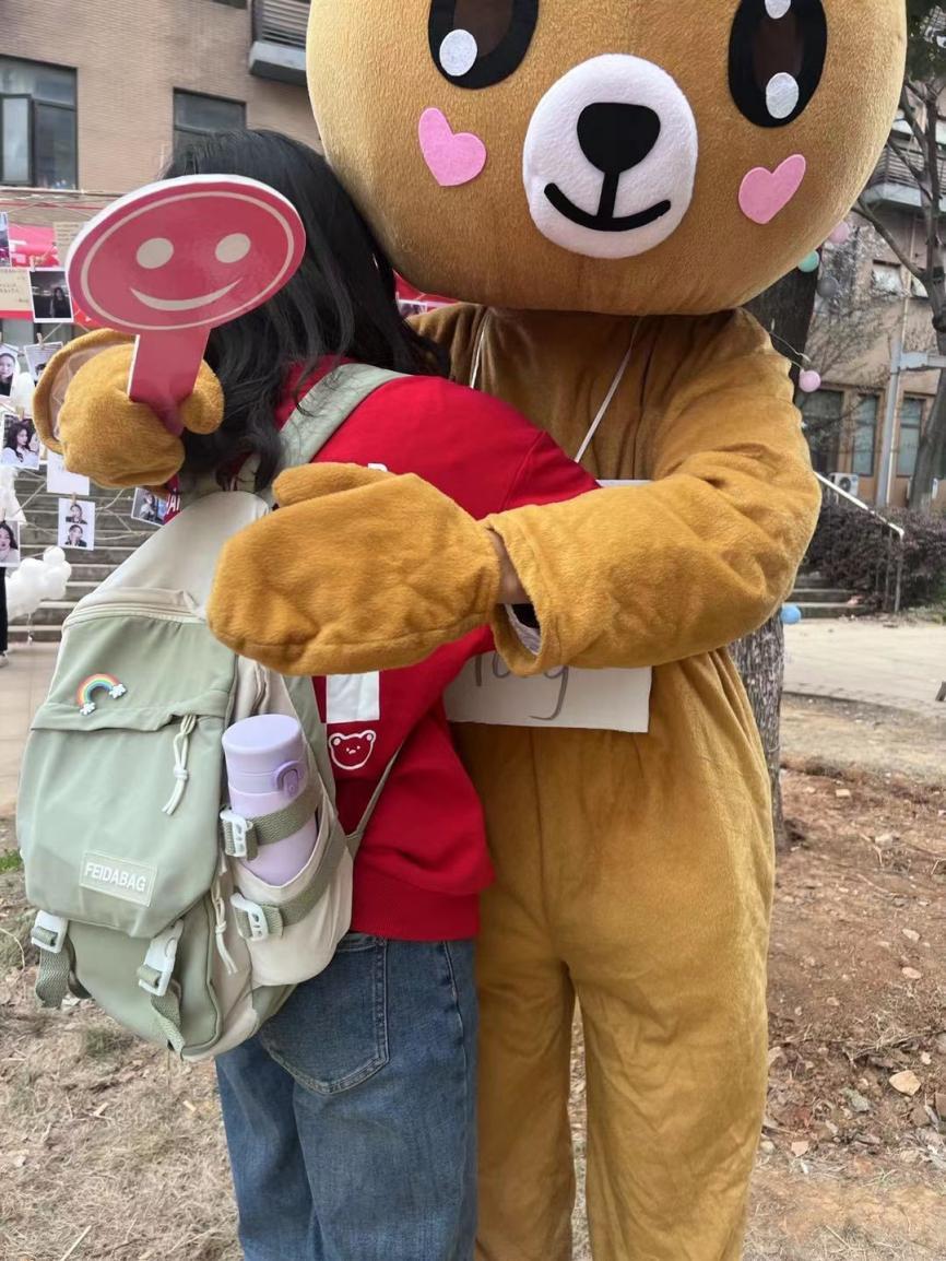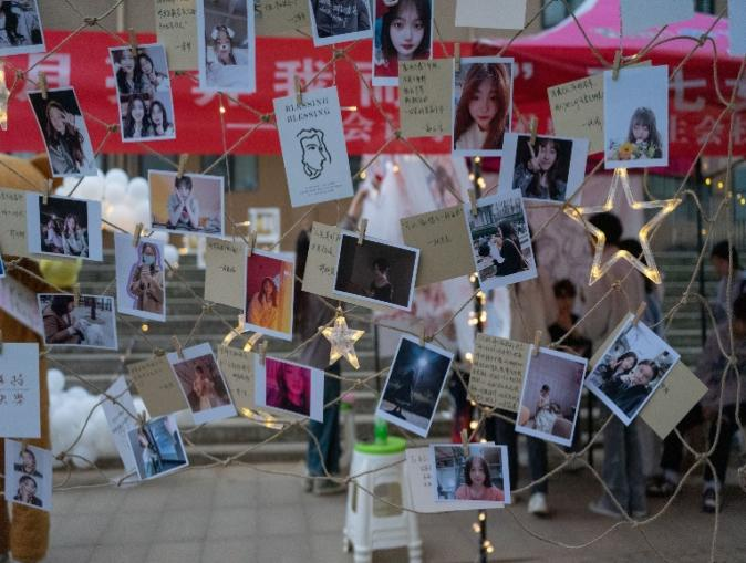 为展示女性多样的美、关怀同学,我们还设计了涂鸦、“free hug”拍照打卡的活动项目定格她们美丽的瞬间。洁白的画纸上挥舞着五彩斑斓的痕迹,没有美丑,只有属于她们不一样的美。皎洁的月光下是纯洁的月亮气球灯,纯白的头纱随着发丝飘舞,微风在拥抱她们,而她们正在绽放自己的美。
