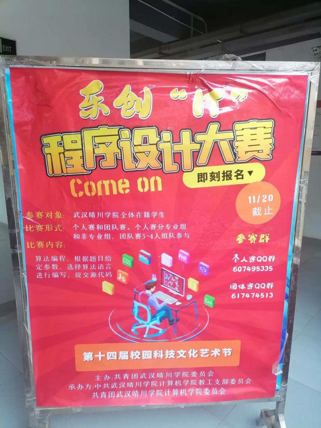 编程没有模板,只需心灯一盏。本次推迟的“乐创IT”程序设计大赛圆满结束,非常感谢参与本次比赛的晴川学子们,明年我们将以更好的姿态,更优质的题目面向大家,让我们一起进步,同攀高峰。