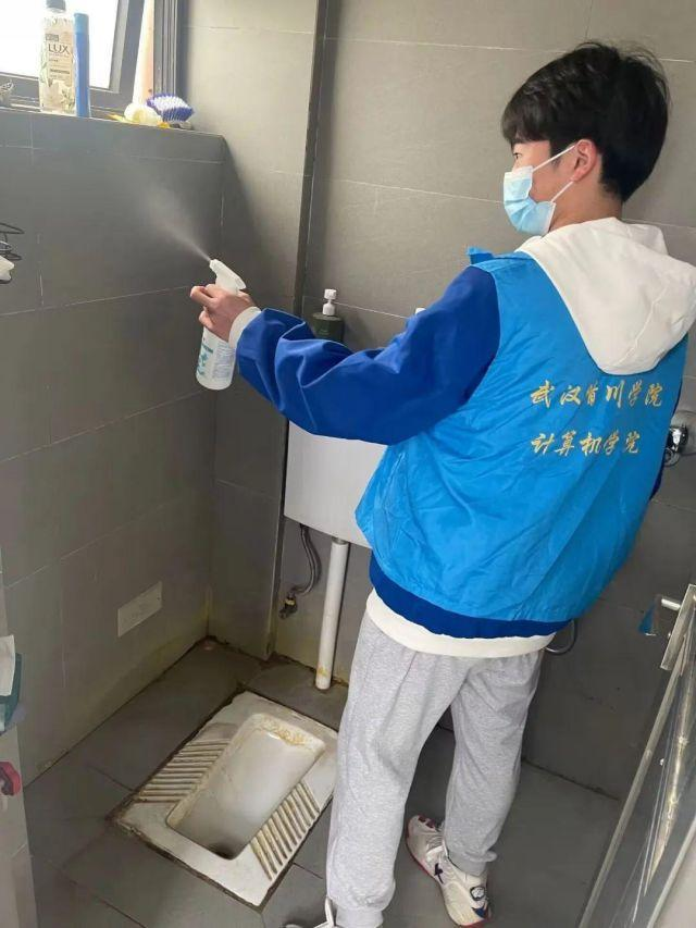 本次消杀活动中,活动人员被分为18个组,每位人员都严格按照要求,佩戴口罩,按照卫生消毒管理的标准规范操作,就寝室卫生间,洗漱台,书桌,门把手等人员接触偏多,易滋生细菌的重点区域进行全面而细致的消杀工作,切实履行了自身职责。经过了近一个小时的努力,各组成员成功对学院四百余间寝室进行了卫生消杀,圆满完成了此次消杀任务。