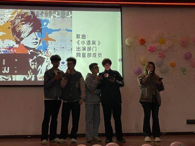 在欢乐的氛围下,节目表演正式拉开帷幕。第一个节目是由生活权益部和外联实践部联合演唱的歌曲《心引力》,现场不时响起台下同学的和声,现场氛围感十足。紧接着是组织部成员表演的宅舞《Snowmix》,表演的同学穿着可爱的lo裙,跳着欢快的舞步,瞬间吸引了观众们的目光,同学们纷纷拿出手机记录下这甜美一刻。随后由学习部同学带来歌曲《晴天》,在柔和的灯光下,回想起校园的点点滴滴,台下的观众不由得打开手电筒为他们应援,轻缓的歌词唱出的却是每一个人的青春。一曲结束后,活动举行得如火如茶,网宣部同学更是带来了耳熟能详的歌曲《小酒窝》,台下观众也跟着轻声哼唱。