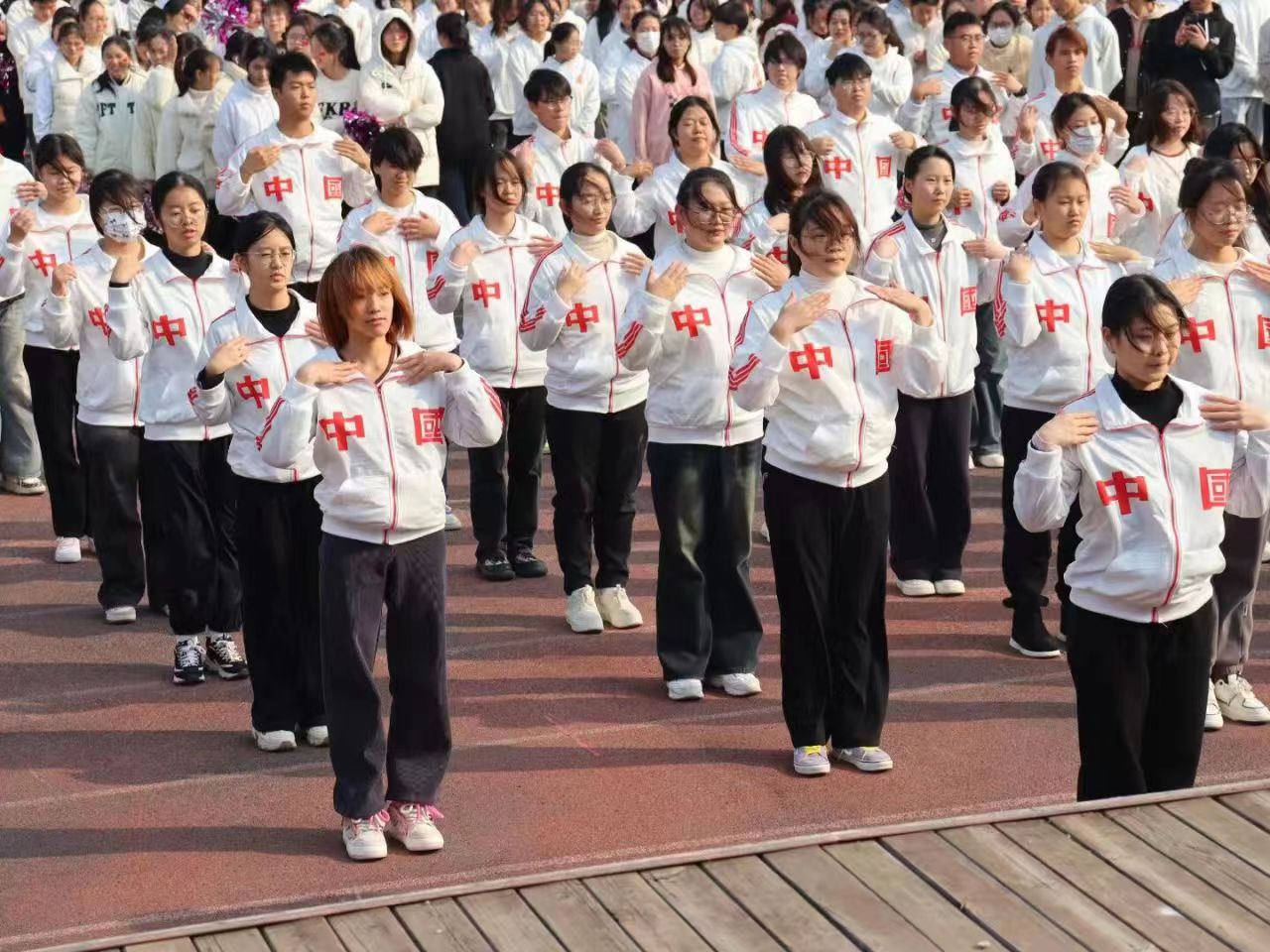 注会2301班的每一个同学身着带有“中国”字样的服装,体现出中国青年的朝气与活力。他们乘着欲与天公试比高的飒爽英姿,在赛场上一展高下,动作流畅熟练,优美而又标准。