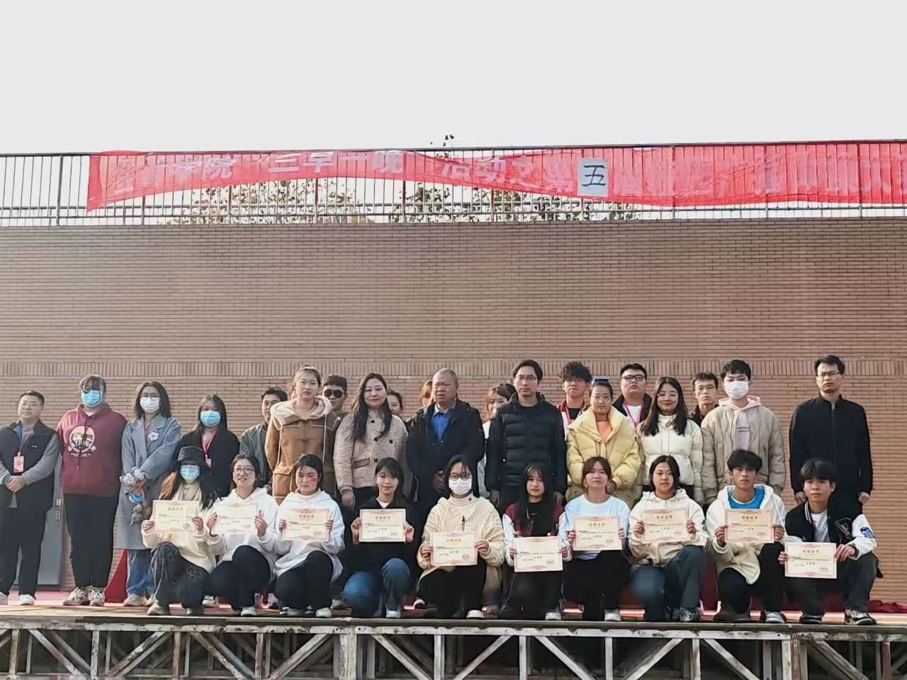 最后,各班班级代表、学生会工作人员及评委老师上台进行合影留念。