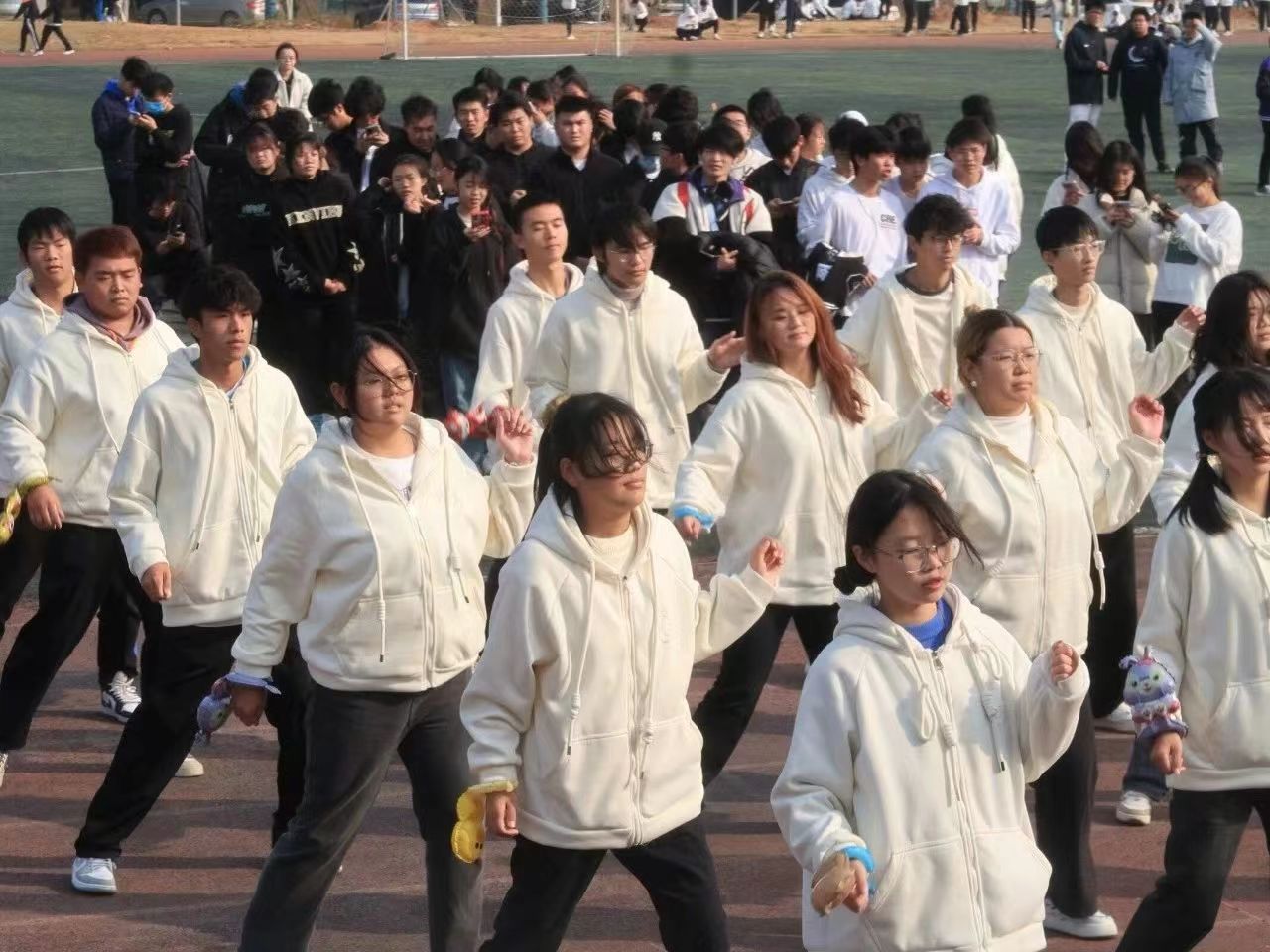 “我们大家都期盼着,新的一年会带来新的希望”,音乐声一响,会计2305班踏着动感的节拍,清脆的击掌声点燃了现场的氛围,主席台前的他们激情四射,以整齐划一的舞姿彰显出青年身上的朝气与希望。