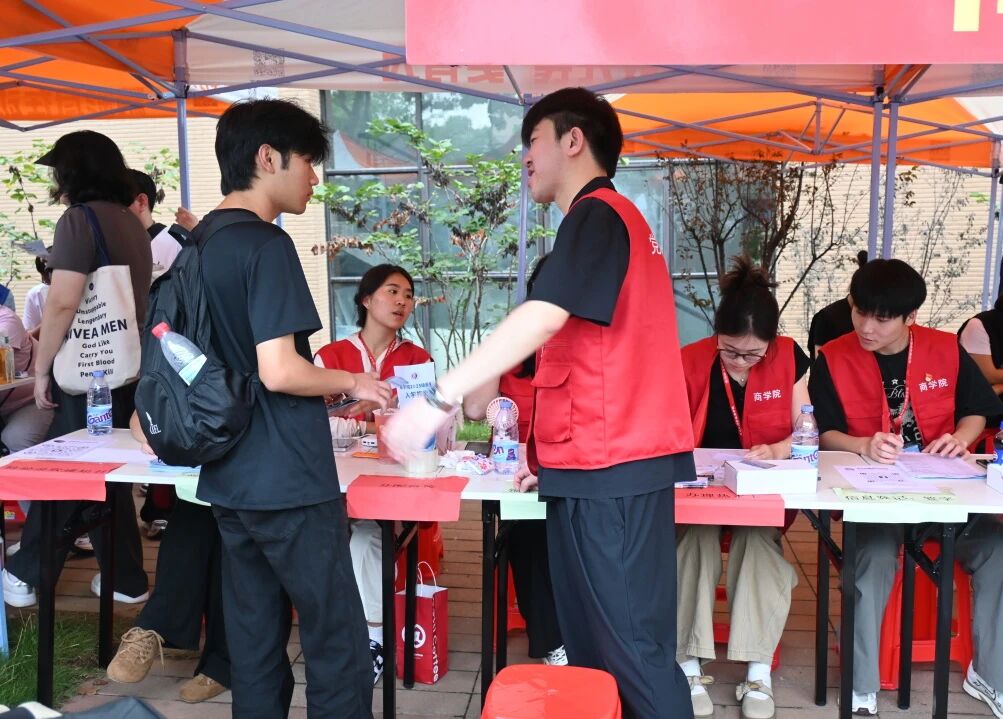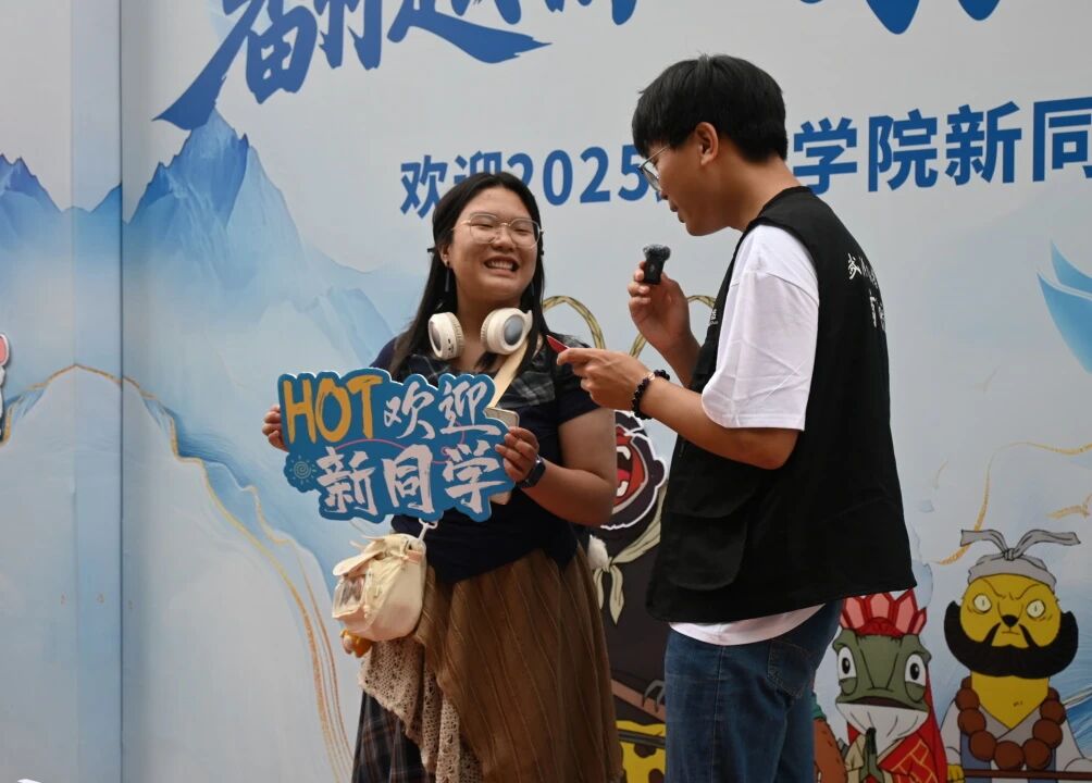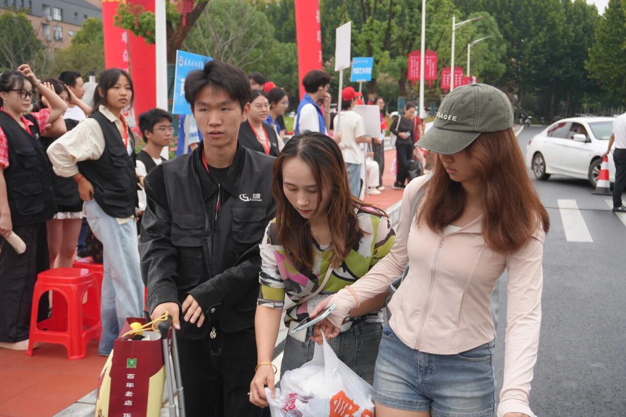 迎新过程中,志愿者们化身“校园百事通”,带着新生逛校园,介绍教学楼、食堂、图书馆等,讲述校园传统与故事;志愿者们还热情地分享社团纳新、学生会活动的相关信息,鼓励新生勇敢尝试,在商贸这片沃土,挖掘兴趣、绽放光芒。
