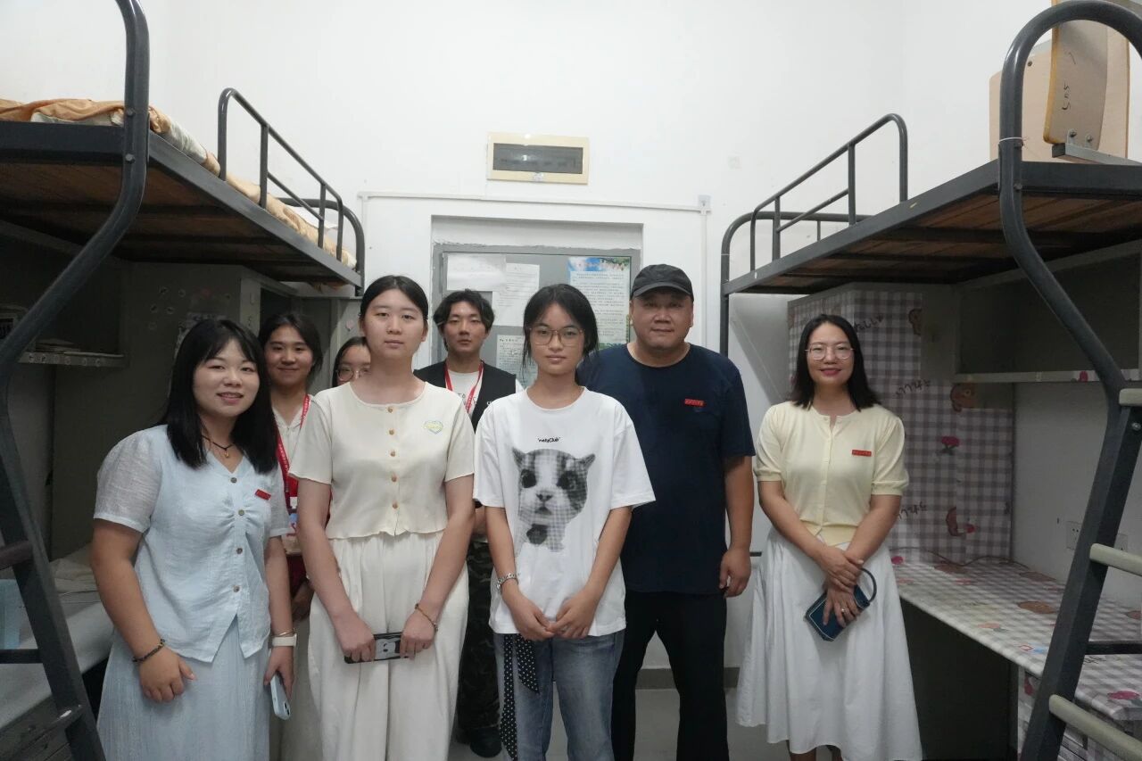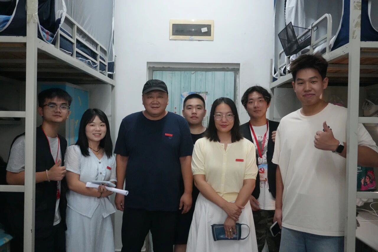 13日下午,商学院执行院长薛红松,党总支书记岳逸飞,团总支书记赵宇明,新生辅导员一行前往新生宿舍查寝。老师们与新生亲切交谈,查看宿舍设施,询问入住感受。薛红松院长叮嘱新生尽快适应大学生活,合理安排时间,兼顾学业与校园活动。岳逸飞书记强调宿舍安全,提醒注意用电、防火防盗,保持宿舍整洁和谐。赵宇明书记和新生辅导员也送上祝福,希望新生度过充实有意义的大学时光。