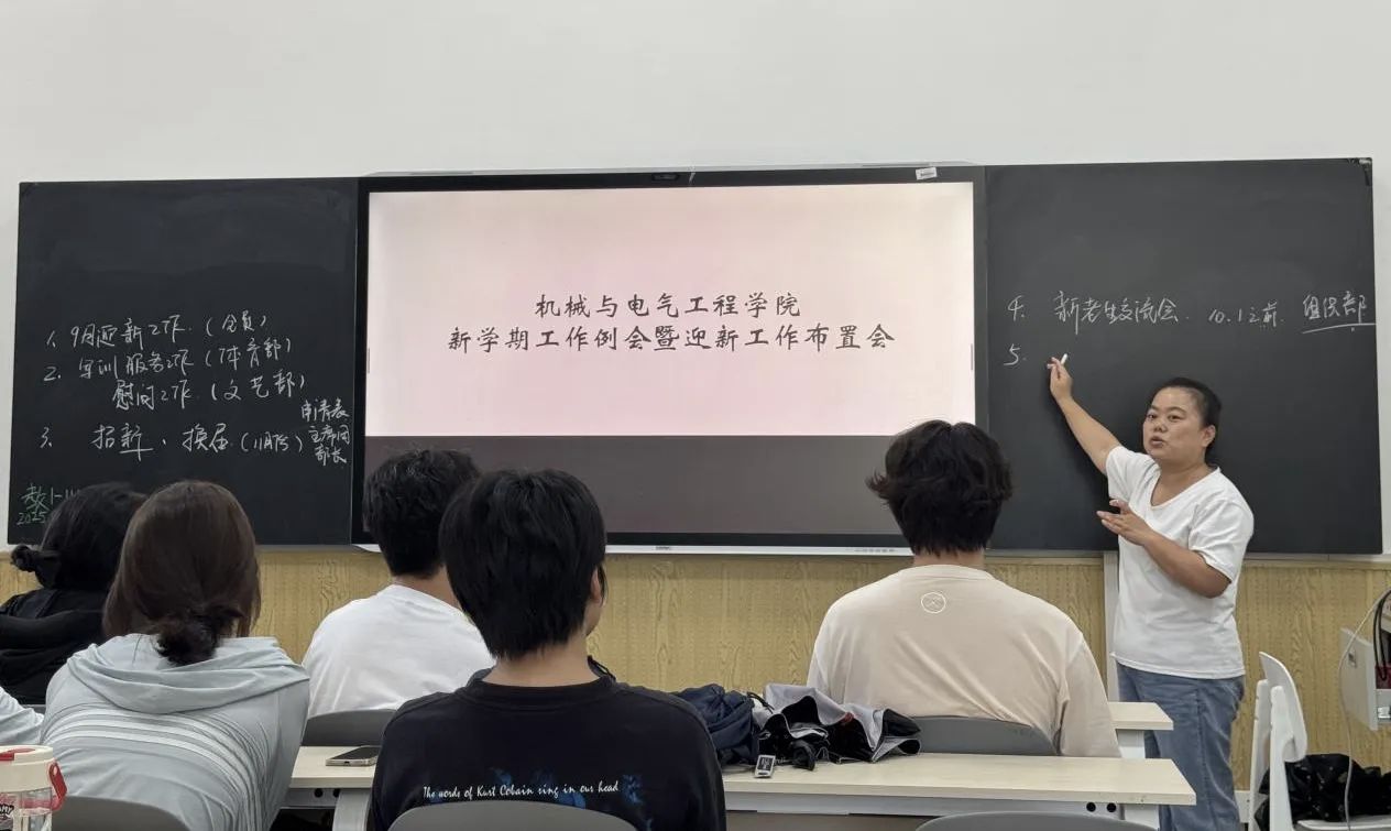 为确保学院各项工作有序推进,2025年9月2日,机械与电气工程学院团总支、学生会在教1-101组织召开了新学期工作例会暨迎新工作布置会。会议由团总支书记李兰芳老师主持,团总支、学生会全体成员参加。