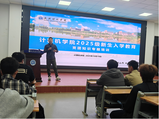 2025年10月19日晚,计算机学院在综合教学楼二号楼 105 报告厅,面向 2025 级全体新生开展党团知识专题培训。本次培训旨在帮助新生系统了解党团基础知识,明确入团入党方向,由计算机学院团总支书记余延旺担任主讲人。