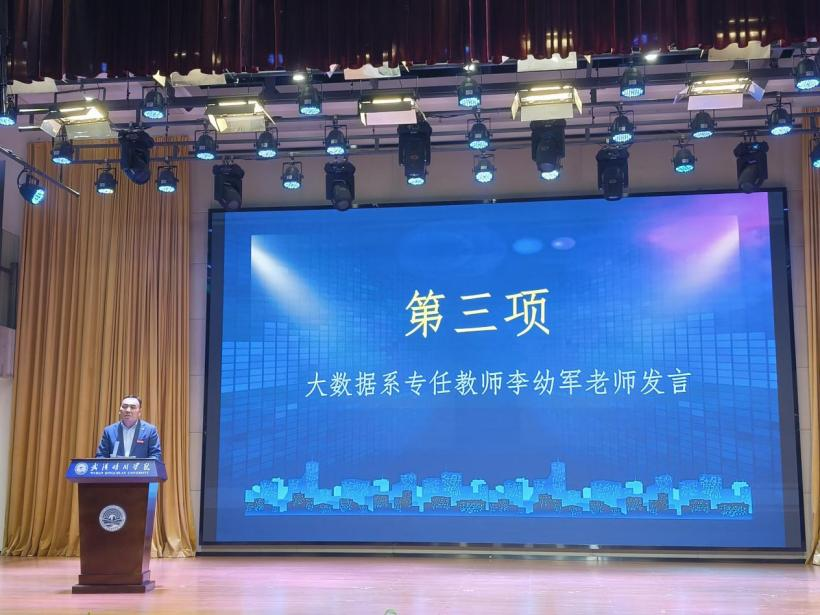 随后,由大数据系专任教师李幼军老师登台发言,为同学们带来专业指导。老师着重强调参加竞赛对计算机专业学生的重要性,他结合当前行业趋势,简要梳理并分析了计算机领域不同方向的主流竞赛,让同学们对各类竞赛有了更清晰的认知与了解。同时,李老师也特别提醒同学们,竞赛能力的提升离不开扎实的专业基础。他鼓励大家务必认真学习核心课程,刻苦钻研专业知识,只有将理论学深悟透,才能为后续的竞赛备赛筑牢根基,也为实践应用提供有力的理论支撑。