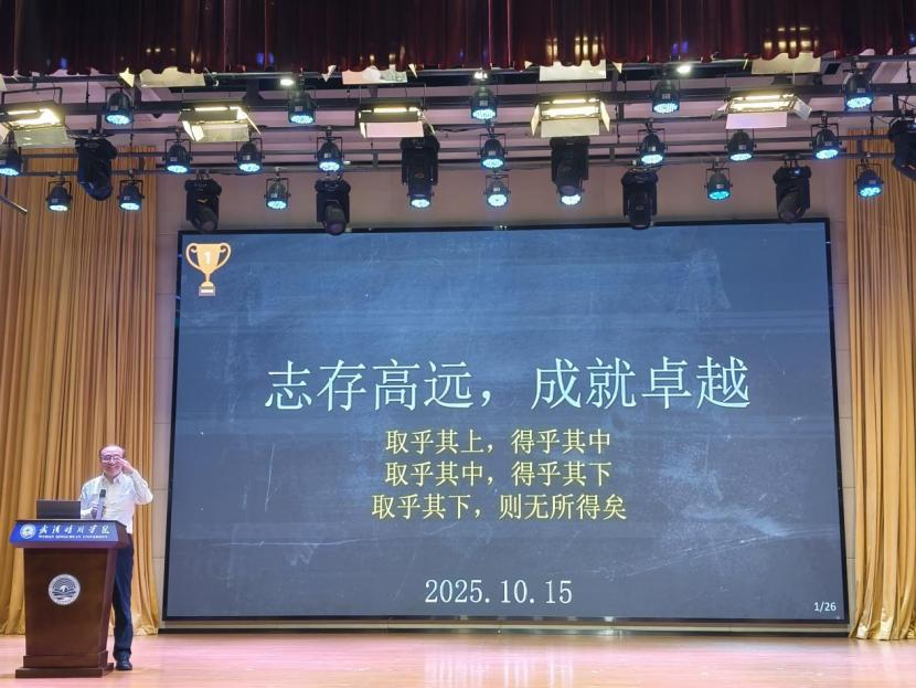 紧接着,计算机学院黄传河院长为新生们带来开学第一课。黄院长开篇即勉励同学们志存高远、勇担国家重托,并围绕以下三个核心方面展开论述:第一调整心态,主动把握时代机遇;第二规划人生,实现成人成才目标;第三修炼气质,追求卓越成长之路。