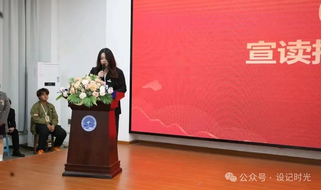校团委主席团成员范冰冰同学出席大会并发表致辞。她首先结合校团委年度工作部署与整体规划,对设计工程学院学生会过往一段时期的工作成效给予高度认可 —— 肯定其在思想引领、服务同学、校园活动开展等方面的扎实作为,认为学院学生会的工作既贴合校团委工作要求,又紧密对接学院学子需求,展现了基层学生组织的责任与担当。