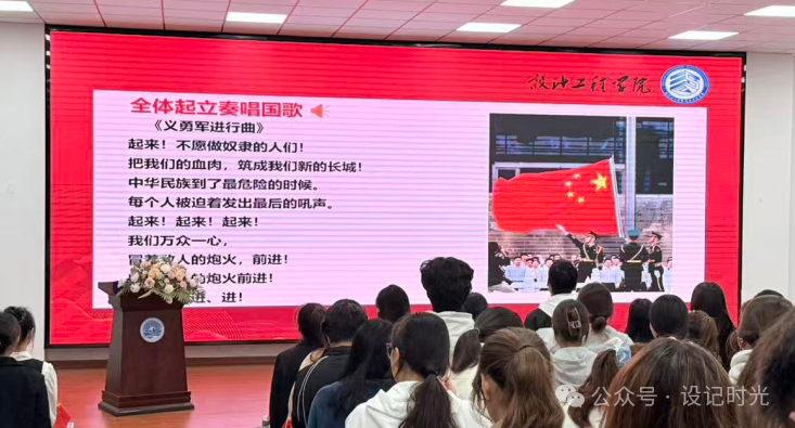 伴随着庄严雄壮的《义勇军进行曲》奏响,本次大会正式拉开帷幕。现场全体参会人员闻声而起,身姿挺拔、肃立就位,目光中饱含崇敬与肃穆。激昂的旋律回荡在会场每一个角落,大家神情庄重,以饱满的情感齐声高唱国歌,铿锵有力的歌声里,满是对祖国的赤诚与敬意,也为整场大会奠定了庄严而神圣的基调。