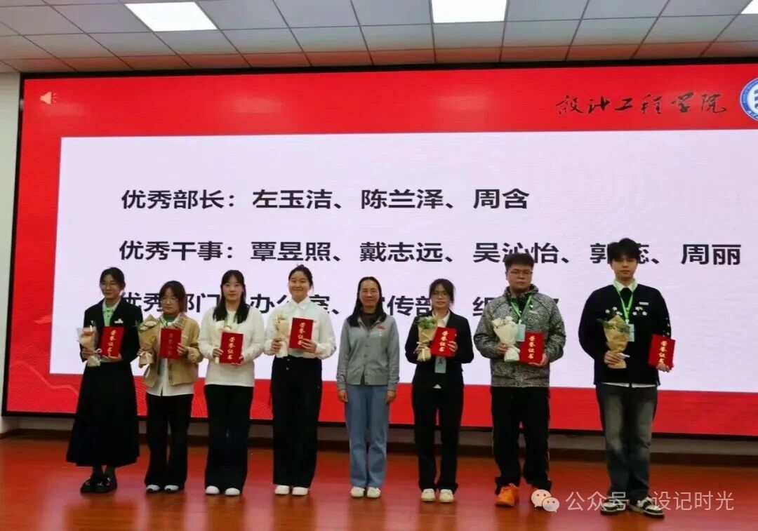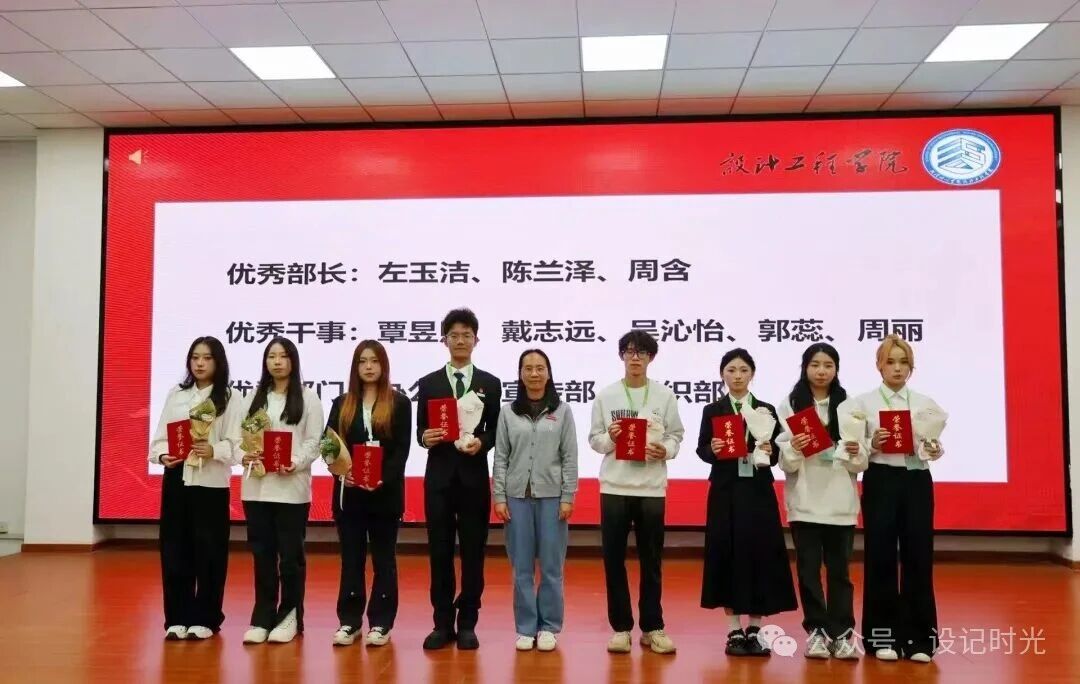 设计工程学院团总支书记杨好胜老师宣读《关于武汉晴川学院设计工程学院学生会2024—2025年度表彰的决定》,经学院综合评定,授予左玉洁、陈兰泽、周含3名同学“优秀部长”称号;授予覃昱照、戴志远、吴沁怡、郭蕊、周丽5名同学“优秀干事”称号;授予学生会办公室、宣传部、组织部3个部门“优秀部门”称号。随后,设计工程学院党总支副书记唐林丽老师为获奖个人与集体颁发荣誉证书,并合影留念。
