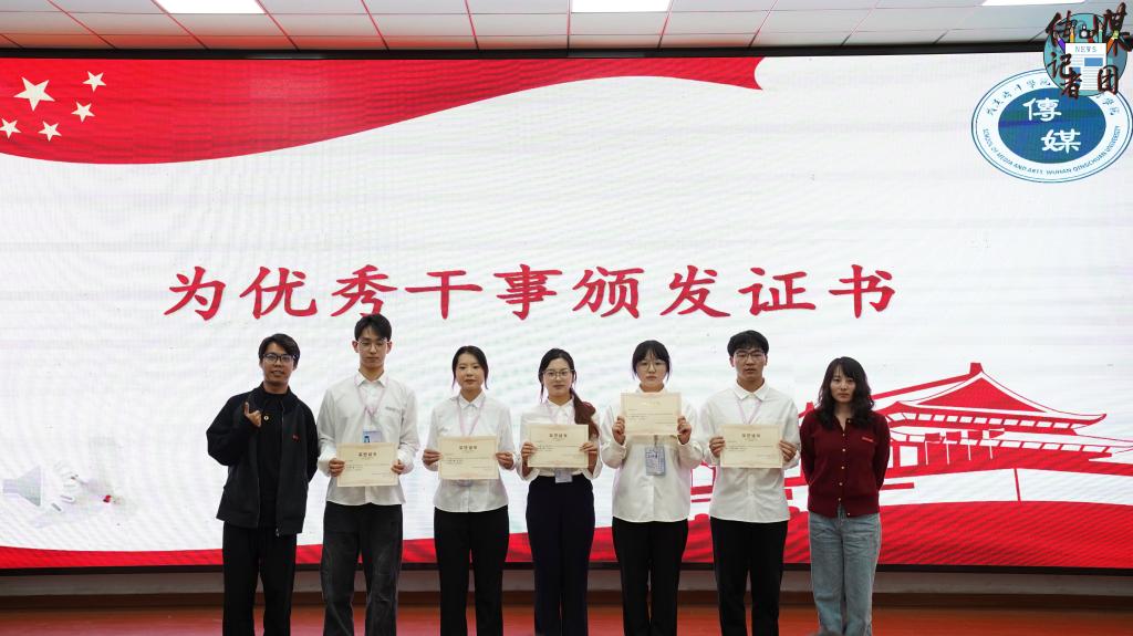 由辅导员唐婷老师和王凯老师为优秀干事颁发证书。