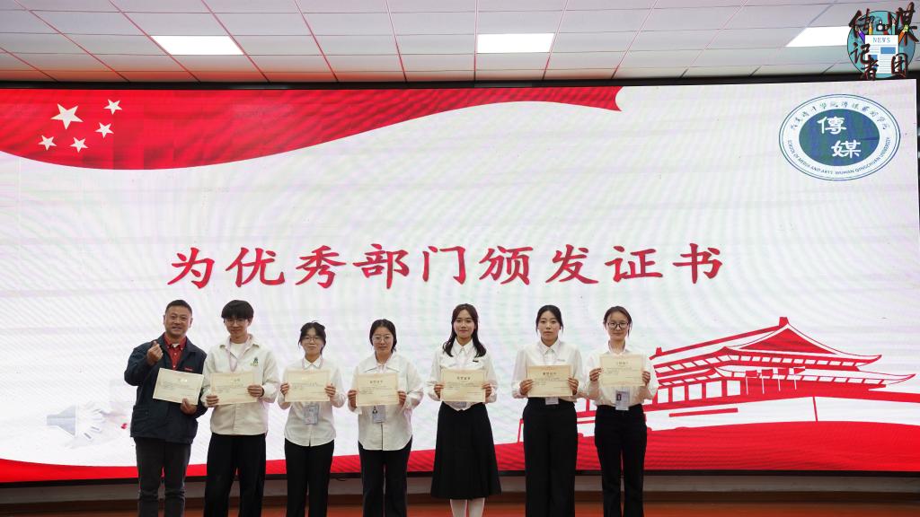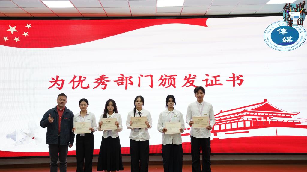 由传媒艺术学院党总支书记赵锐老师为优秀部门颁发证书。