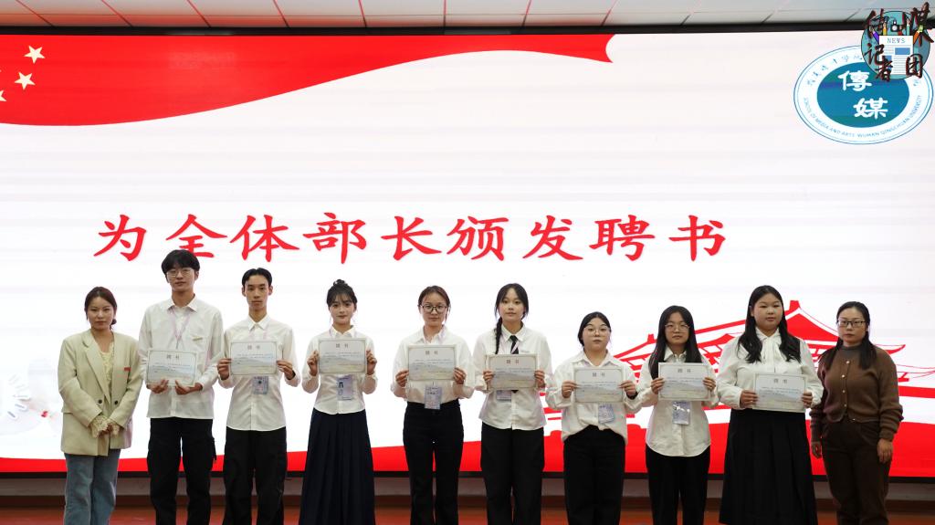 由辅导员张曼丽老师和叶雯婷老师为全体部长颁发聘书。