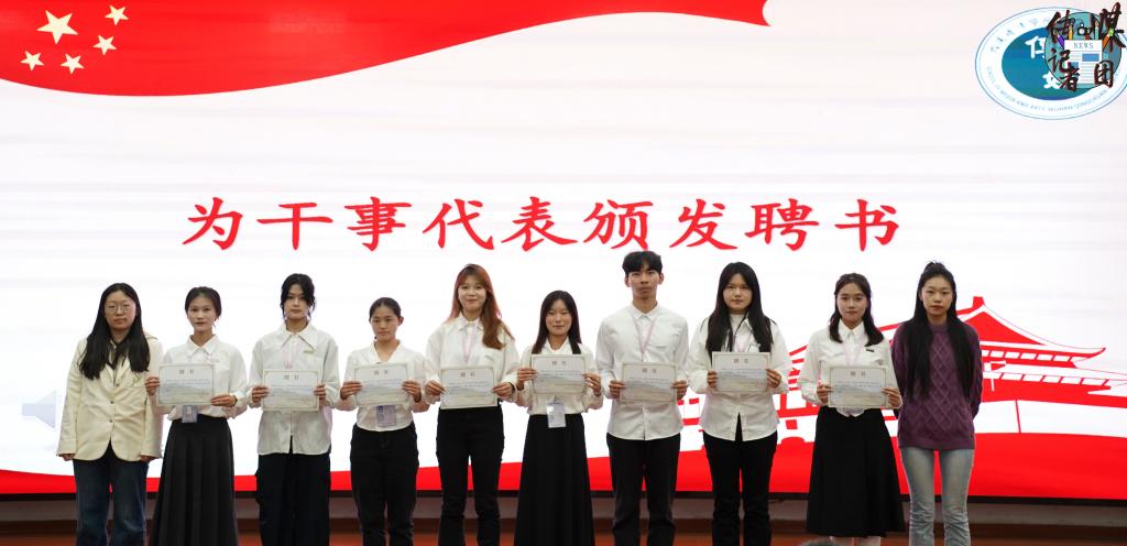 由辅导员方雯怡老师和韩紫怡老师为干事代表颁发聘书。