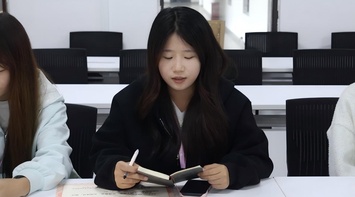 会议伊始,第七届部员代表蒋嘉雯同学率先发言。以温暖而真挚的语调,代表团队向过去一年中所有第七届成员的坚守与付出表达了深切感谢。她特别提到,正是这份对内容创作的热爱,让“晴媒微视”始终充满活力。面对新加入的第八届成员,她表示热烈欢迎,并分享了三点来自实践的心得:始终保持高度热情,勇于尝试不同内容方向;重视团队协作,明确视频创作是集体智慧的结晶;勤于开展头脑风暴,关注创意逻辑与技术实现的结合。她希望“晴媒微视”能成为所有人共同成长的舞台,大家携手将“青小媒”打造得更加出色。