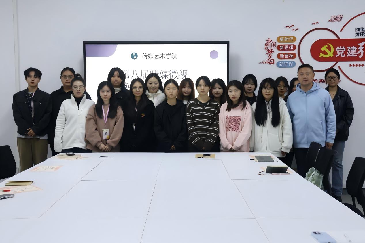 2025年11月6日中午12时20分,武汉晴川学院传媒艺术学院晴媒微视于综一318召开第八届传媒艺术学院晴媒微视换届大会,出席本次会议的有传媒艺术学院党总支书记赵锐老师和团总支书记吴杨老师以及第七届、第八届晴媒微视全体成员,本次会议由晴媒微视刘慧敏主持。