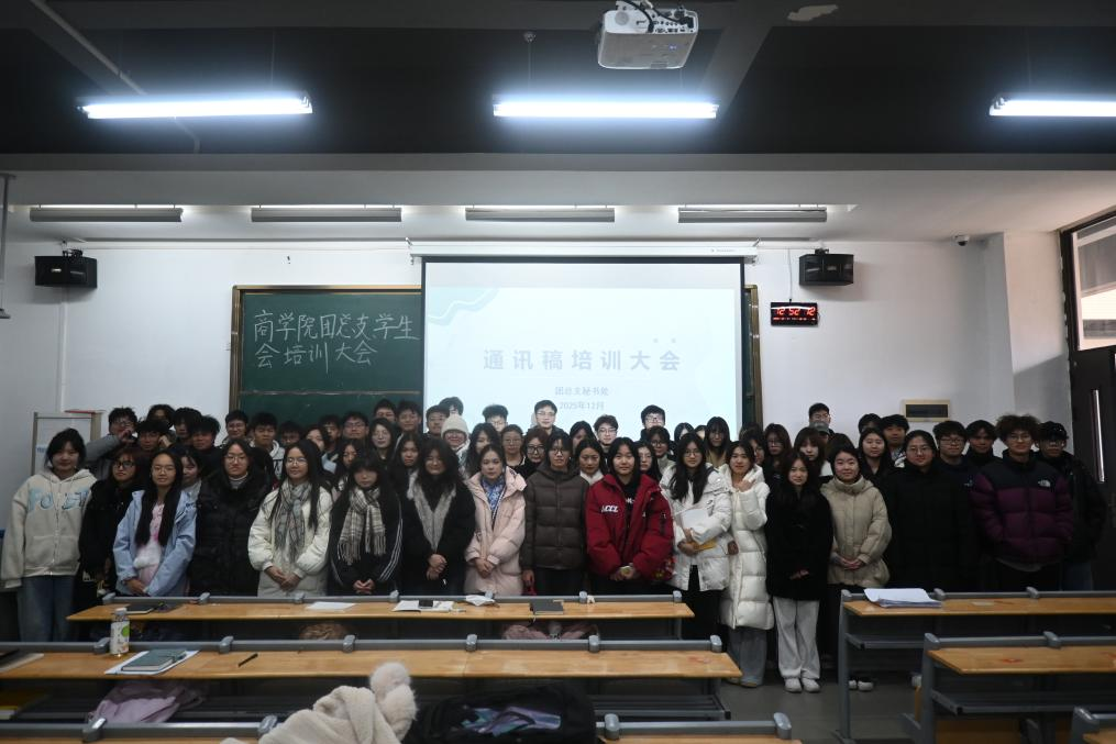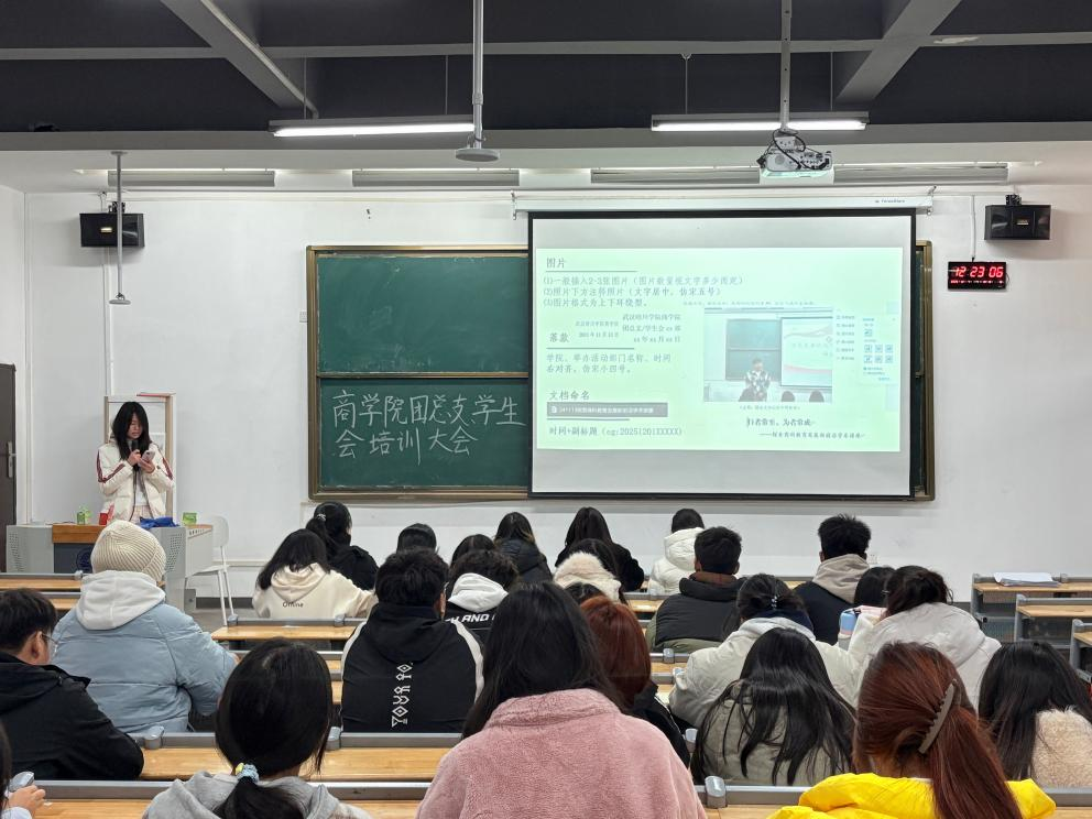 寒日砺能,笃行致远。2025年12月4日中午12:15,武汉晴川学院商学院于教一305教室召开第十八届团总支、学生会培训大会,商学院团总支、学生会全体成员参会。本次大会围绕通讯稿撰写、报销表与发票规范制作、活动会议拍摄全流程三大核心环节展开。