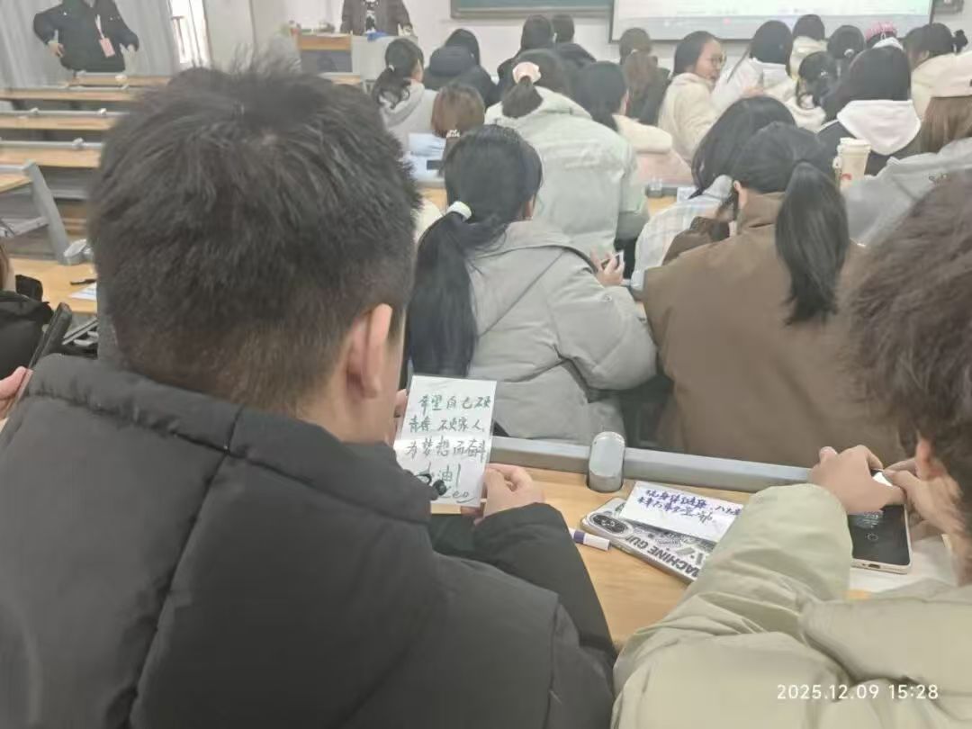 活动伊始,“时光序言”环节拉开帷幕。同学们手持打印好的校园生活照片,一张张鲜活的画面唤醒了藏在时光里的点滴回忆。大家借着这份温暖的底色,提笔在照片背面写下对未来的憧憬与期盼。一笔一划,都是此刻最纯粹的热忱与懵懂,悉数藏进字里行间。
