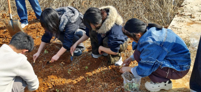 本此次种植活动打破传统植树模式,创新性地选用蔬菜与花卉搭配种植,打造“可食可赏、可学可劳”的校园微田园。既种植了易生长、易收获的番茄,黄瓜等各类蔬菜,让同学们感受“春种秋收”的成长喜悦;又搭配了向日葵、雏菊、月季等观赏花卉,为校园增添靓丽色彩,实现生态效益与观赏价值的双赢。这种特色种植方式,不仅让同学们近距离接触植物生长规律,体会劳动与生活的紧密联系,更在潜移默化中培养生态环保理念与热爱自然的情怀。