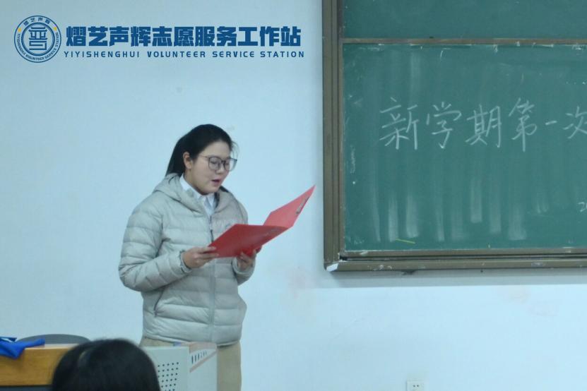 大会伊始,副站长徐王镶全面总结寒假志愿服务工作。寒假期间,工作站26名成员投身各类志愿服务,累计服务时长452.41小时,9名同学参与专项社会实践,多名同学服务时长超20小时,以实际行动诠释奉献精神。寒假期间,工作站共收到成员的志愿心得21篇,录用19篇。同时,工作站成员学业成绩优异,21人跻身专业前十,实现志愿服务与学业提升双向赋能。徐王镶寄语全体成员,新学期合理平衡学习与服务,主动投身实践,让奉献成为工作站的鲜明底色。