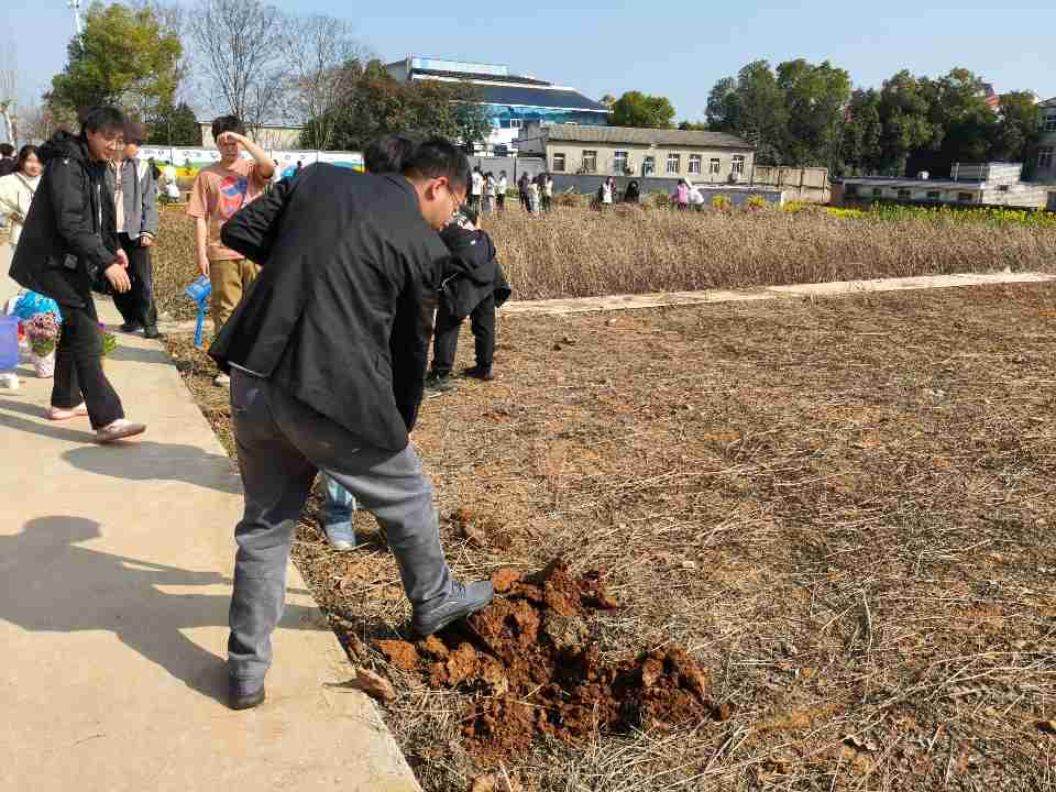 活动现场,泥土的芬芳与青春的活力交织。余老师铲下第一铲,将板结的泥土翻作松软的“温床”。