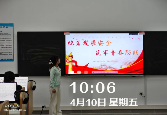 活动伊始,团支部负责人田慧玥点明主题核心意义:守护生命健康,守护国家长治久安,强调大学生作为自身安全的第一责任人,需将安全意识融入日常。
