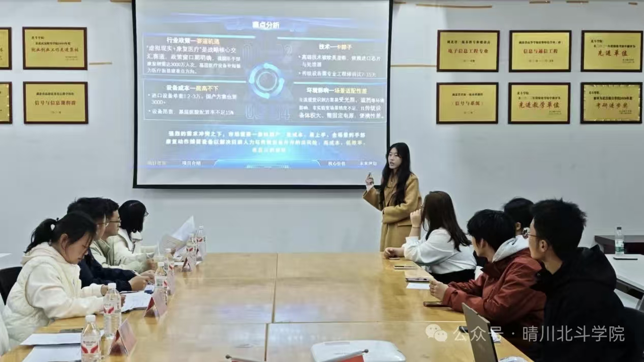 比赛现场,各团队精神饱满、自信昂扬。选手们通过PPT演示与逻辑表达,围绕项目背景、市场分析、商业模式等核心内容,生动展现了项目的创新亮点与价值。从科技赋能到文创融合、民生服务,各项目凝聚团队智慧,彰显了我院学子立足专业、勇于探索的实践精神。