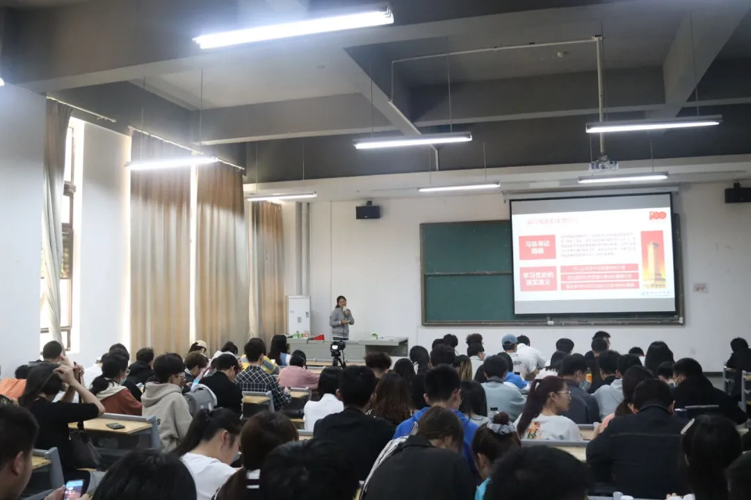 2021年4月28日,由王彦彦老师主讲的“四史”大讲堂第一讲,在教一109正式开讲,我校团委团组织、学生会组织积极参与了本次党史学习教育。