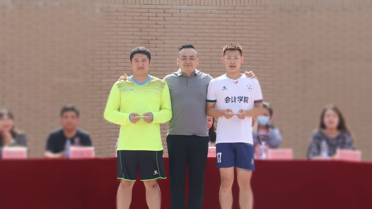 校党委学生工作部部长刘泽政老师向王凯和张兴旺分别颁发“金手套”和“射手王”奖项