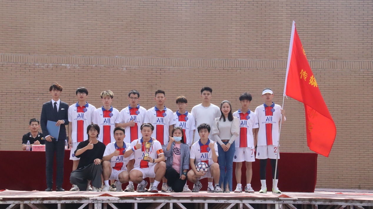 校团委书记冯婷婷老师向传媒学院代表队颁发亚军奖杯