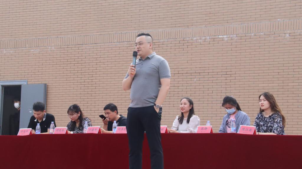 校党委学生工作部部长刘泽政老师对本次赛事进行总结发言。刘老师首先对参加本次比赛的各代表队队员们进行了赞扬,对活动的组织和开展表示了高度肯定。他表示球员们在球场上斗志昂扬,为了目标而努力拼搏的身影和奋发向上、不甘示弱的精神,十分振奋人心。最后,他向球员们发出了与教职工代表队进行友谊赛的要求,各球员齐声欢呼,并表示期待。