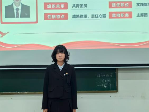 本轮竞选由校团委学生会主席团组织,各二级学院团总支书记、主席团成员共同与会。候选人根据抽签顺序结合竞选PPT依次展开发言,从自我介绍、工作亮点、未来规划等方面讲述自身竞选优势及对职位的理解,老师们现场提问,竞选者现场答辩。